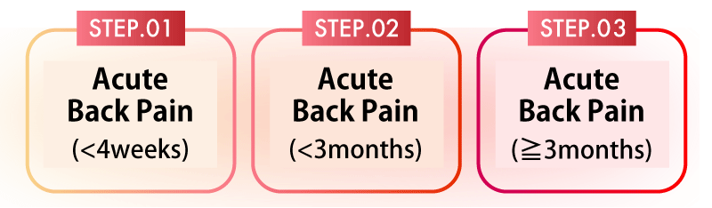 Acute low back pain generally refers to back pain that occurs suddenly, and is commonly categorized into “acute,” “subacute,” and “chronic” phases, depending on the timing.