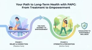The Cycle of Health: We move you from “Passive Care” (us treating you) to “Active Care” (you maintaining your health).