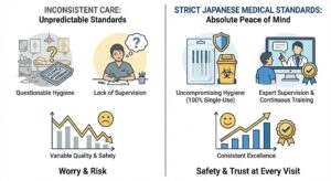 Uncompromising Hygiene: PAPC operates under the rigorous protocols of a Japanese medical facility, strictly enforcing a 100% single-use, disposable needle policy to eliminate any worry of cross-contamination.